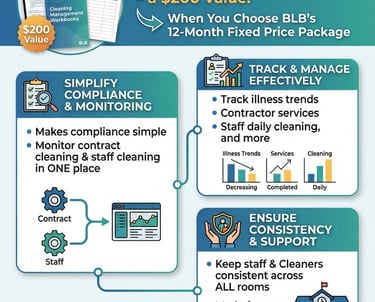 Customized Cleaning Management Workbook: A detailed scope of works is built into a customized workbook, providing a clear and structured plan for all cleaning activities.