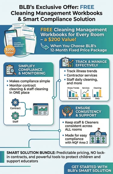 BLB Cleaning Services is built entirely on the ACECQA framework, setting us apart from generic cleaning companies. Every process is sector‑aligned and supported by SMART goals, making tasks measurable, efficient, and outcome‑driven while naturally delivering compliance and healthier childcare environments.