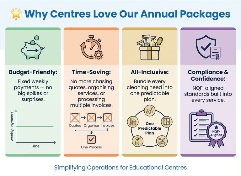 Best for: Centres who value efficiency, predictable costs, and long‑term compliance. A fixed 12‑month package reduces admin, builds transparency, and positions the centre as a sector leader.