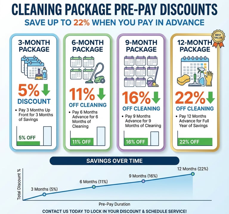 Or prepay quarterly and save an extra 5% on both cleaning and training